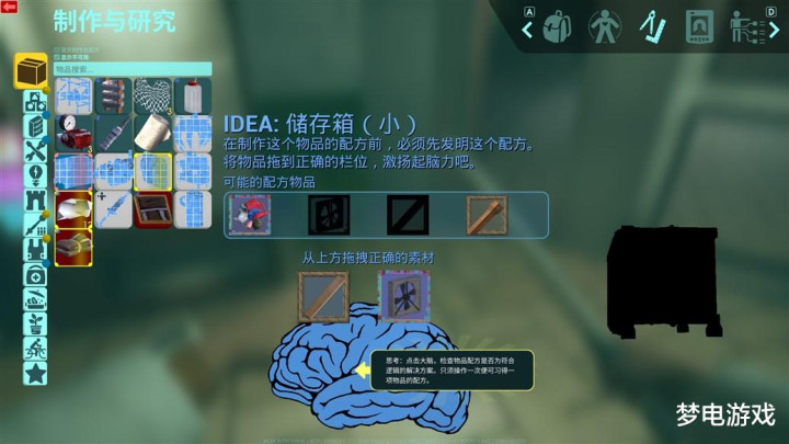 而游戏的蓝图设定,是一种很符合逻辑的方式,每当玩家捡到一种全新的物品时,就有可能凭借此物头脑风暴出新的物品,但也只是有可能,有的时候需要多捡几次才能想到。